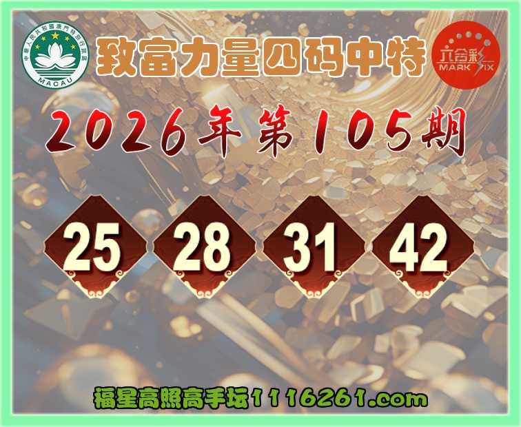 主题: 105期:🏅福星高照【致富力量✨四码中特】免费查看